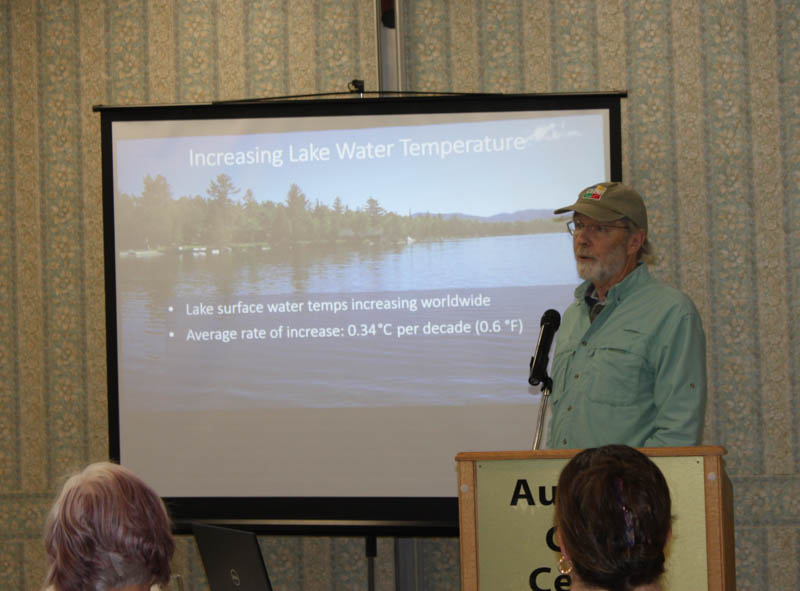 Scott Williams, Limnologist, has more than five decades of experience in assessing and protecting the health of Maine’s lakes. He discussed the threats that climate warming pose to Maine’s Lakes, the changes that have already been documented and what will likely occur in the future.  He reviewed measures that can be taken to make our lakes more resilient to the effects of a warming climate.