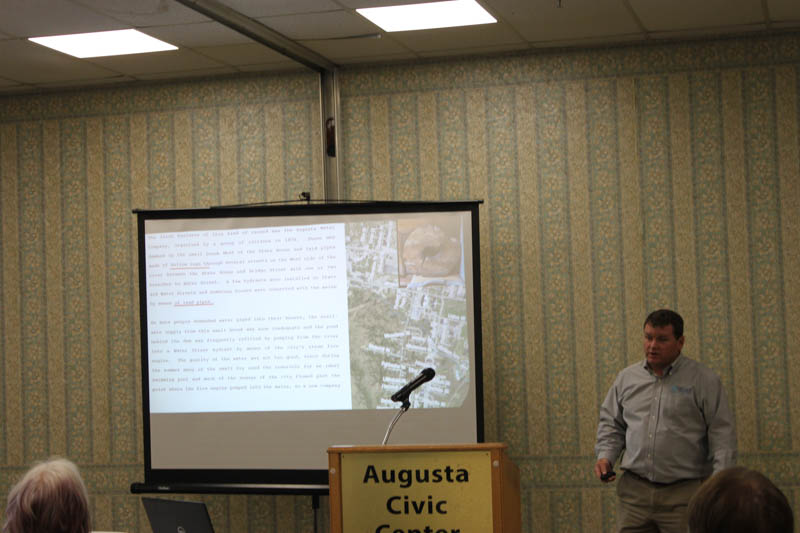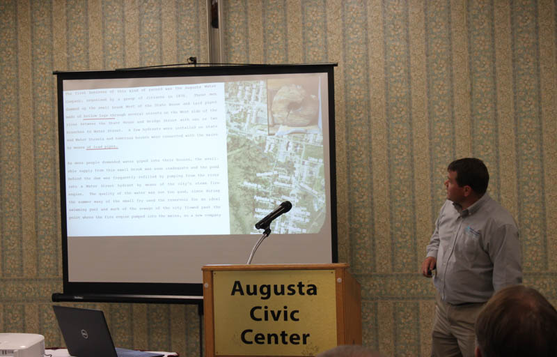 Andy Begin, Assistant General Manager/Chief Engineer of Greater Augusta Utility District (GAUD) discussed the history and evolution of their water supply. The Greater Augusta Utility District has a long history dating back to 1870 when it started as a private water company. Over the decades, it has transitioned between using surface water sources like the Kennebec River and Kennedy Brook, and groundwater sources, like wells. Today, drinking water comes from three groundwater wells on the west side of the Kennebec.